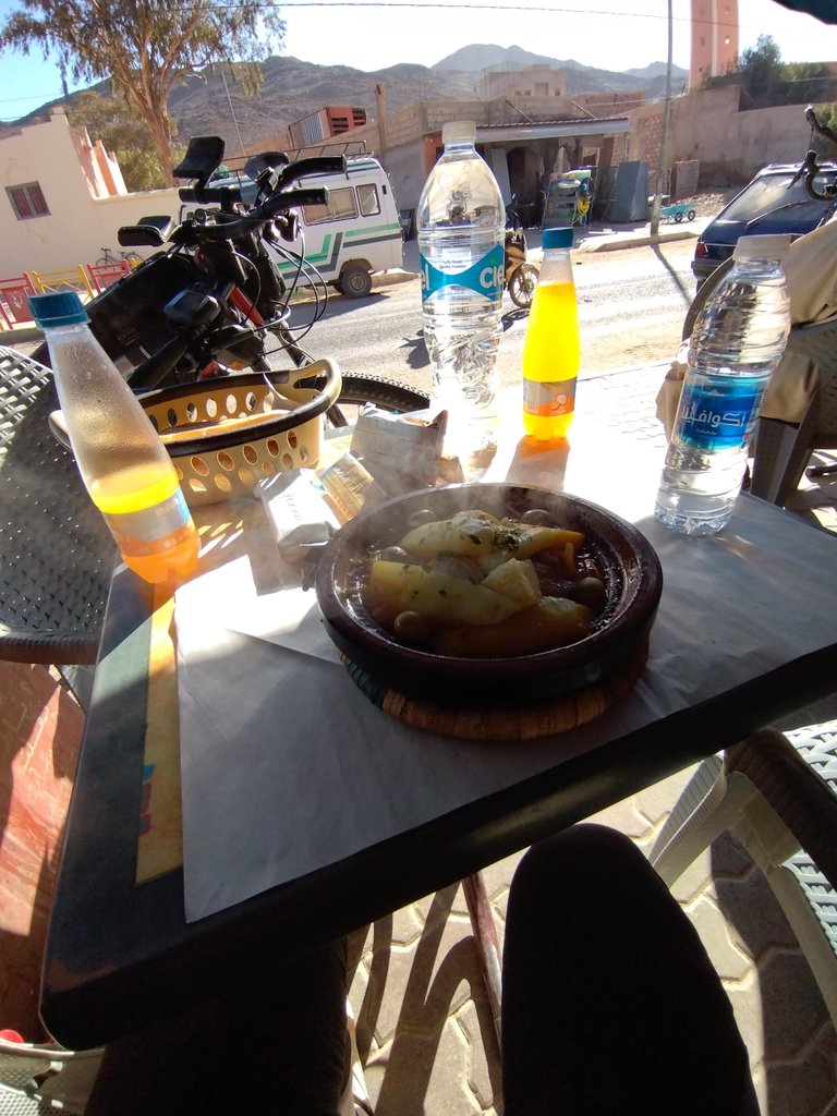 I visited a local restaurant in Issafen. I had a tagine, water, and coke and bought a large amount of bars. I bent over the food like a hunchback and swallowed the hot portions with difficulty. I could not bring myself to speed. The sun got pretty hot and even lunch couldn’t get me back on my feet. Or butt.