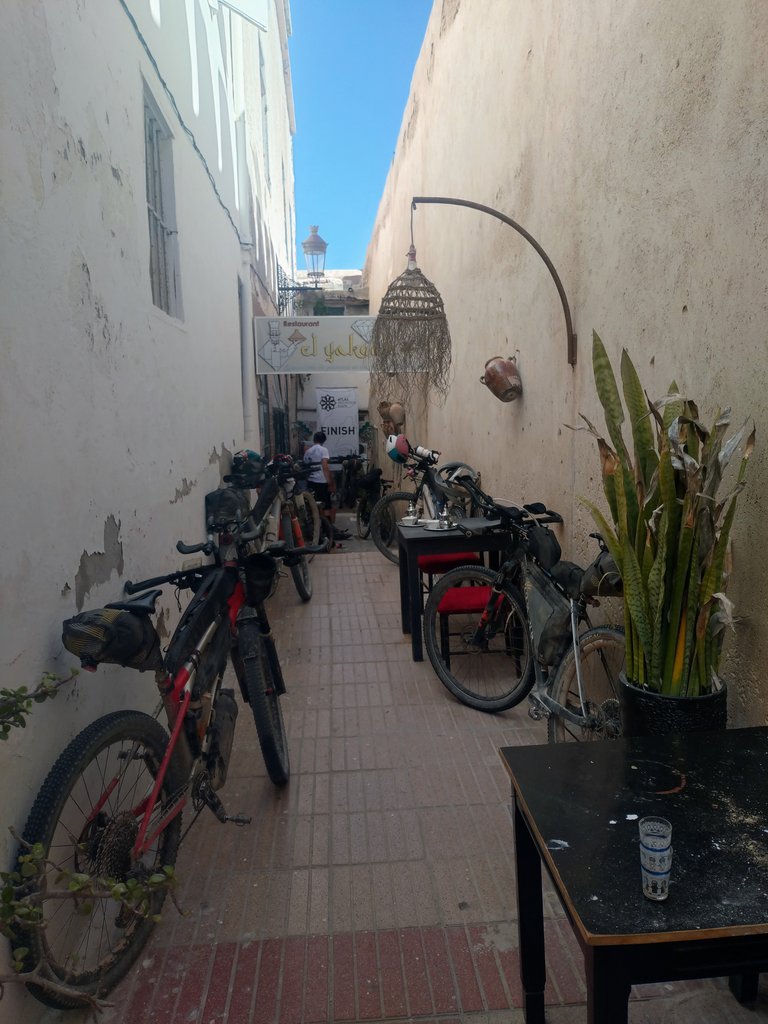 It was lively there. A little too lively and it was clear that I wasn’t there in the first wave. I went inside and showed my brevet card. A local Moroccan guy repeatedly tried to lure me into the restaurant across the street, but I wasn’t going to waste my time now. I refused his offer several times with the words: “No! No! No!”