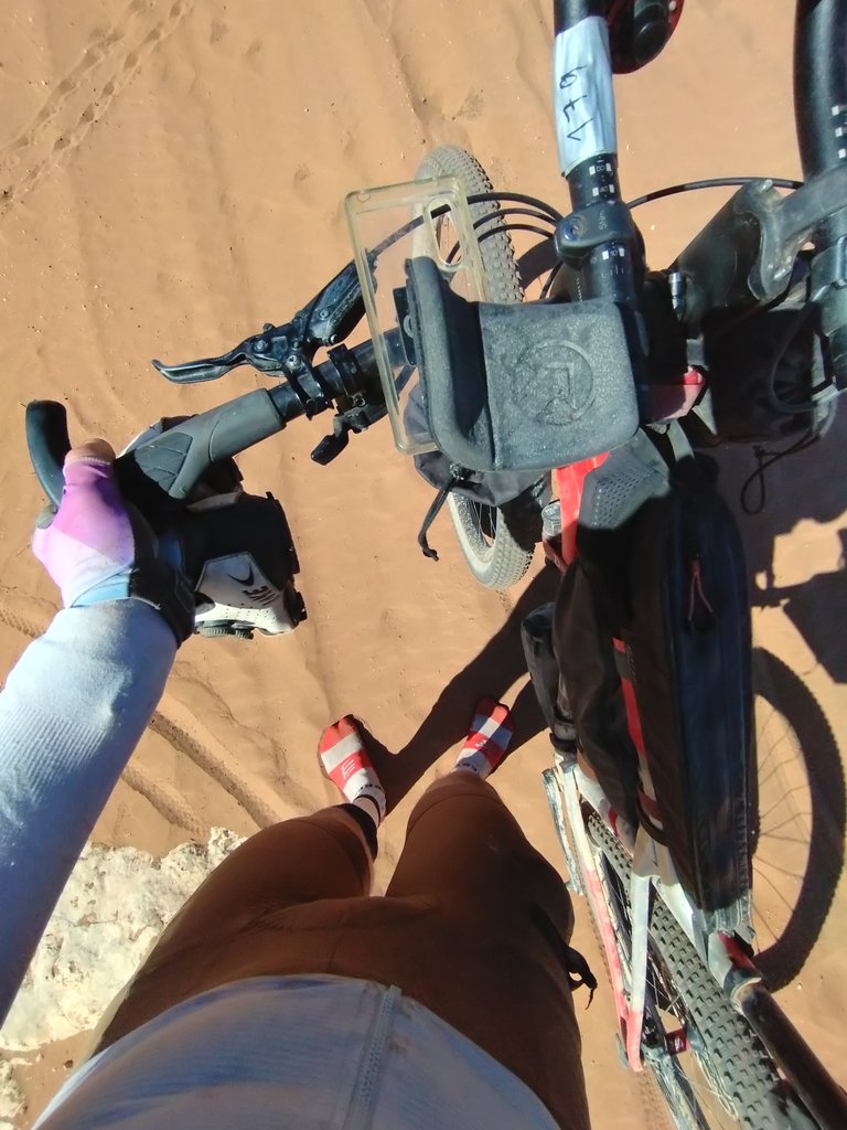 I just couldn’t ride in that sand. I suspected that I could significantly release the pressure in my tyres, but I didn’t feel like it. What if I had a problem? My pump wouldn’t work? What if I had knocked the valve off? I blew off some air, but only slightly. The route was a two-track road where it was a complete no-go. But there was a harder ground on the sides that was rideable in some places. It was a constant getting on and off though. I was running out of water by the end and I was looking awful.