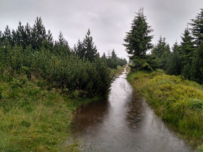 Déšť postupně ustával, ale ve sjezdech mi byla zima. Usychal jsem jen postupně, protože slunce se ani nechystalo vylézat a krčilo se za mraky. Brzy jsem se dostal k polským hranicím.