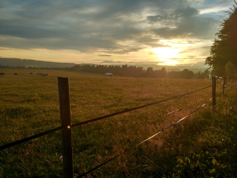Brzy jsem vjel na louku, kde jsem se ocitl na stejné straně plotu jako nepřátelsky vyhlížející krávy. Ještě jsem tam někde špatně odbočil a musel se vracet. Ta louka byla nejezditelná, ale naprosto. Když jsem do toho šlápl, třásl se mi zadek jako rosol. Fakt se to nedalo. Byl jsem neuvěřitelně naštvaný, že musím jet zrovna tudy. Když vylezlo slunce, sedl jsem si na zadek a jedl.