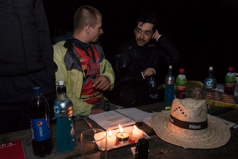 I když mě v tom nečase zdržela Kopkova smyčka, najednou se všechny kilometry proměnily v minulost a já se těsně před půlnocí ocitl na CP3. Od Krkonoš jsem čekal na obrovský oheň, který by mě zahřál. Na stole stály tři svíčky a všichni se krčili u stolu pod plachtou. Co se dalo dělat. Alespoň jsem dostal dort. Za svůj heroický výkon jsem si ten kousek zasloužil. Doufal jsem, že jsem tímto krkonošským únikem všem ujel.