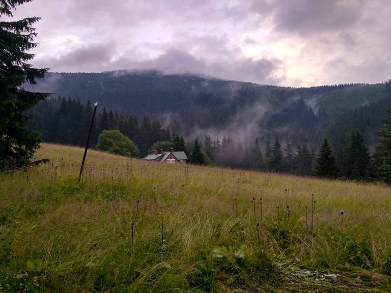 Když jsem viděl Pec pod Sněžkou, přemýšlel jsem, jak to tu asi vypadalo v minulosti. Teď tu každopádně stály na každém rohu obchoďáky. Tady nikdo doopravdy nebydlí, co? Nicméně jsem využil toho, že tam byl Intersport a koupil si nové ponožky. Udělal jsem včera chybu, takže jsem měl mokré oba páry. Chodidla dostávala v mokrém prostředí hodně zabrat. Už jsem měl tři puchýře a zvláštně chození směrem dolů mě dost bolelo.
