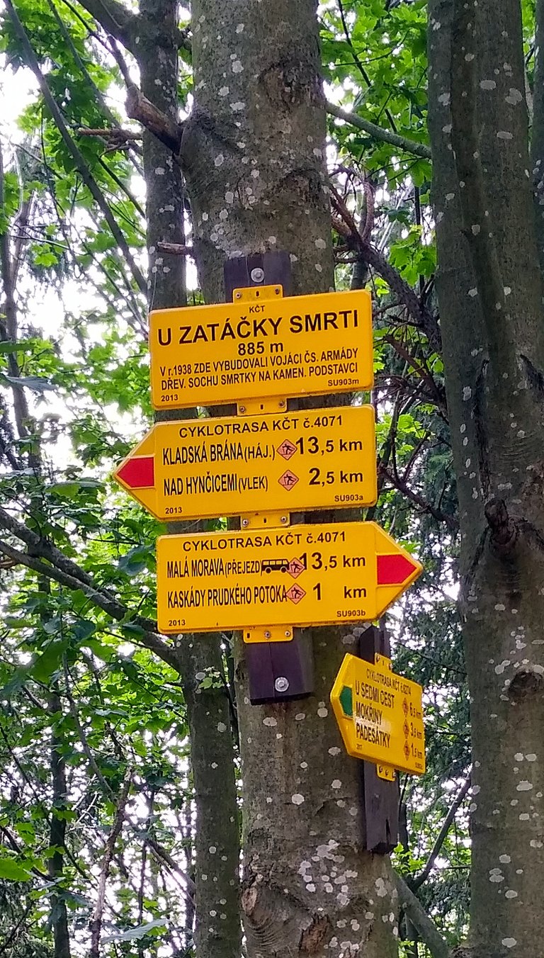 Přišlo něco, co jsem v žádném případě nečekal – krásné cesty. Jelo se mi skvěle – možná to bylo pořád způsobené těmi koláči. Byl to přesně ten typ čundru, kam bych se s horákem vydal na příjemnou dovolenou. Stoupání mi nevadila a svištěl jsem jako vítr. Výhled boží, úbočí hor super, asi nejlepší část celé trasy. Rád se na Kralický Sněžník ještě někdy vrátím. Akorát jsem si občas říkal, že tam jezdím v kruzích, což byla částečně pravda. Když se dole podíváte na mapu, nebyla to úplně přímá cesta.