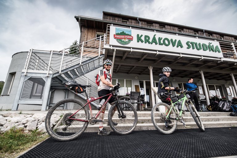 Po třech a půl hodinách jízdy jsme se opět ocitli v civilizaci. Ještě před Liptovskou Osadou jsme se stavili v místní salaši a koupili si oba jogurtový nápoj. Asi to nebylo nejlepší závodní rozhodnutí, ale o přední příčky jsem nebojoval a nechtěl jsem přijít o možnost okusit místní delikatesy.