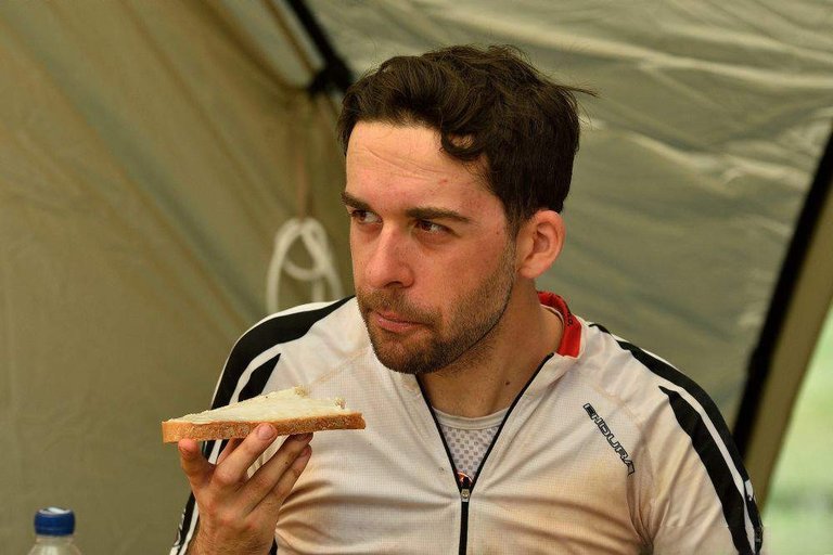 Dál nás míjeli nás závodníci, kteří makali do kopců jako šílení. S Jardou jsme se drželi spolu hlavně proto, že jsme oba vyznávali stejnou taktiku. Omezit pauzy na odpočinek a jídlo na minimum a pohybovat se po maximální možnou dobu pomalým tempem. Ve výsledku nás pořád někdo předjížděl, ale stejně jsme si drželi svoje pozice.