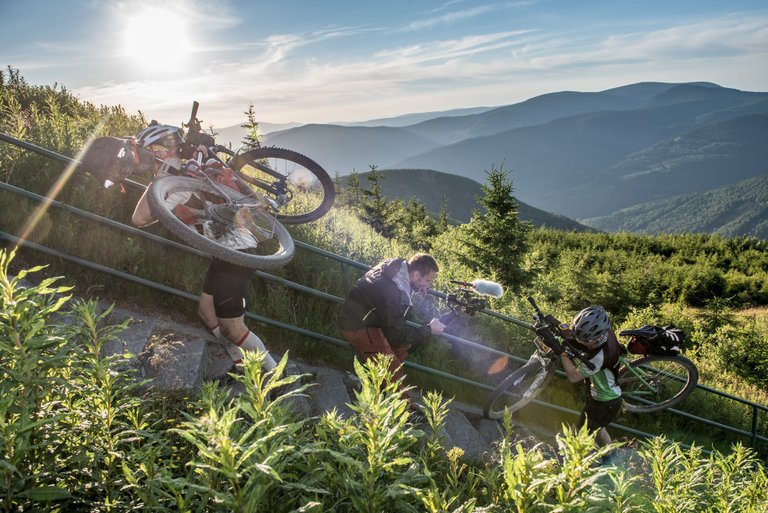 Na Dlouhé stráně jsme se vyškrábali opravdu z posledních sil. Nahoře jsme dali několik rozhovorů, zapózovali, a mohli svištět dolů. Z fotek lze vidět, že jenom mílaři poctivě chodí a všichni ostatní sviští.