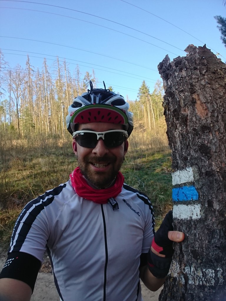 Jenže jsem se držel zuby nehty a pokračoval dál a dál. České Švýcarsko je přece jezdivé, tak proč si to trochu neprodloužit? Cesta byla zelená a do rukou se mi zapíchávalo jehličí. Kůrovec tu už byl. Potkal jsem i strážce parku, se kterým jsem vzhledem ke svému stavu rád prohodil pár slov.