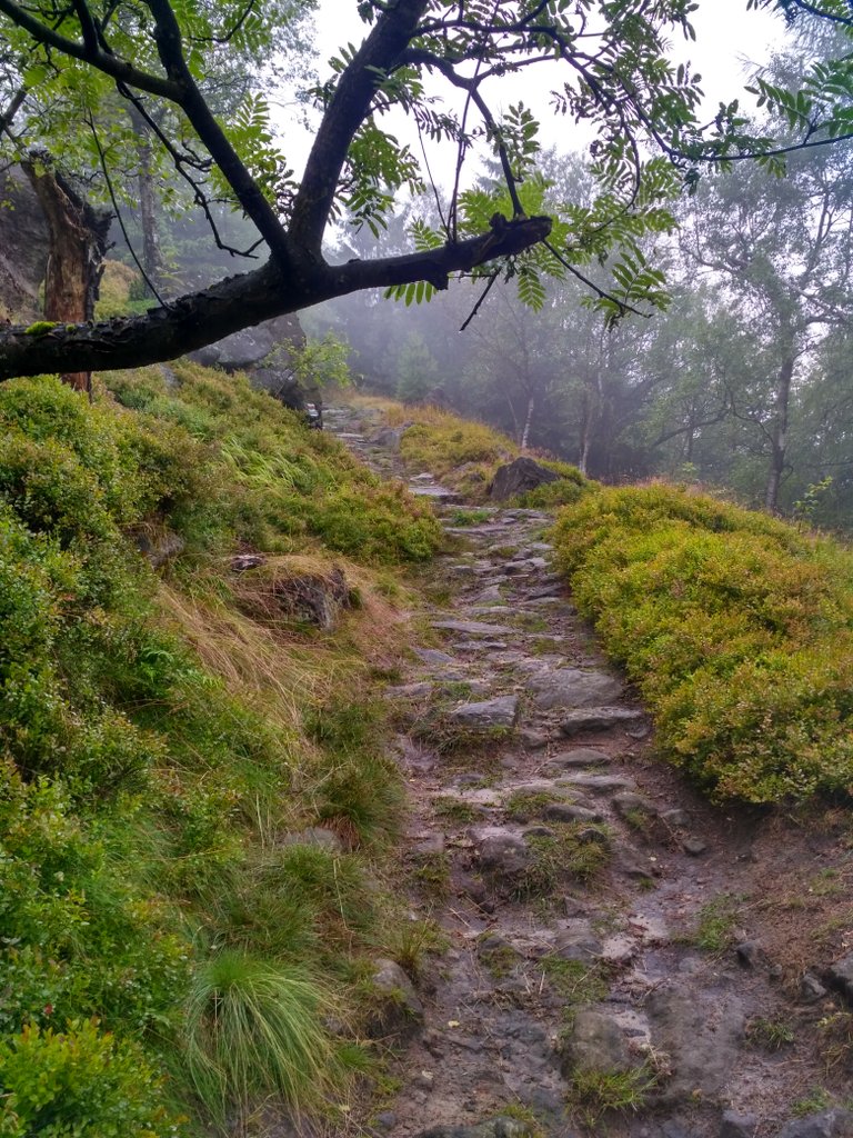 Letos jsem benzinu ve sv. Šebestiánu vynechal a pokračoval rovnou do místních rašelinišť. Hustý déšť mi komplikoval postup, brýle se mi mlžily a já nadával. Co to zase dělám? Je hnusně. A jede se mi hrozně. Za plánem jsem minimálně tři hodiny a jelikož jsem do něj nepočítal Flájský kanál (ze západu se běžně objíždí), bude ještě hůře.