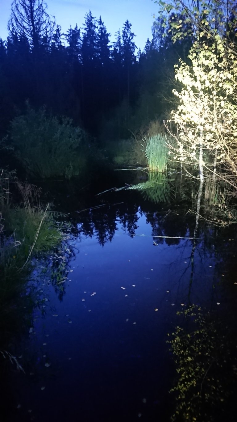 Kolem jedenácté už chtěl Milan někde hlavu složit. Jen těžko jsem se zmohl na nějaké protesty. I světlo mi jelo na nouzový režim. Přesvědčil mě, že pršet nebude a jestli nemám problém, můžeme si lehnout jen tak na asfalt. Zametli jsme z cesty štěrk ekologickým smetákem (větví) a ohradili se koly. Pokud by nás mělo něco přejet, vzbudí vás nejdřív zvuk skartovačky. Ještě jsem pro jistotu dal doprostřed cesty blikačku. Kdo by ale jezdil v noci těchto bohem zapomenutých lesích?