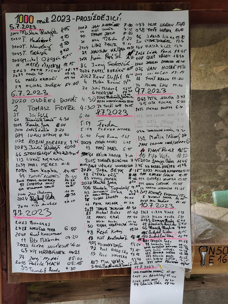 Z Brousku dolů do Františkova to šlo celkem rychle. Pod obloukem jsem se ocitl v 19:40. Cesta z Hranic mi trvala 3 dny a 4 hodiny. Proti předloňsku jsem se zlepšil o 20 hodin 😎 Co bylo nejdůležitější, po 24 hodinách samoty jsem znovu spatřil všechny Tomáše. Milana jsem sice nestihl, ale Cpčko opustil teprve před 5 minutami! Pokud se dokážu rychle vzpamatovat a vyřídit veškerý svůj Cpčkový plán, mohl jsem se držet v závěsu.