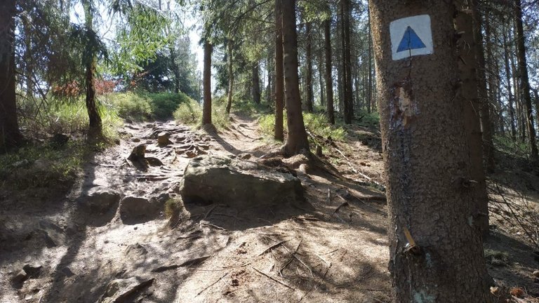 - Stoupání otevírala široká lesní cesta, kde jsem byl dobře chráněný před větrem, deštěm i sluncem