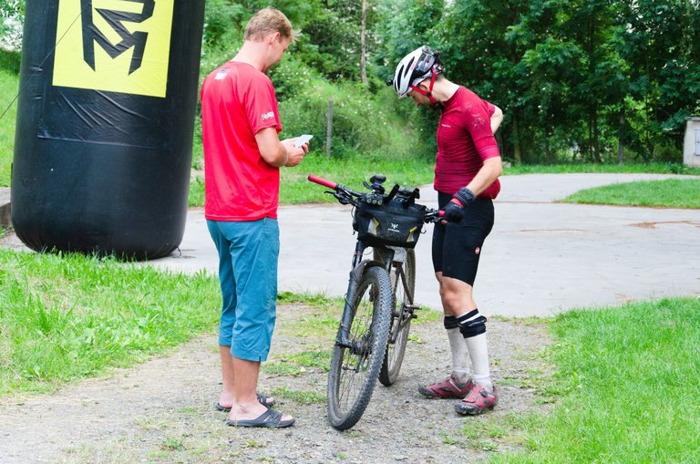 Na fotbalovém hřišti nás uvítal organizátor David a už už nás popoháněl, ať si vyzvedneme trackery. Potkal jsem i několik starých známých. S kým se asi na trase uvidím …? Předzávodní šum jsem využil k občerstvení a dal si místní guláš a kofolu.