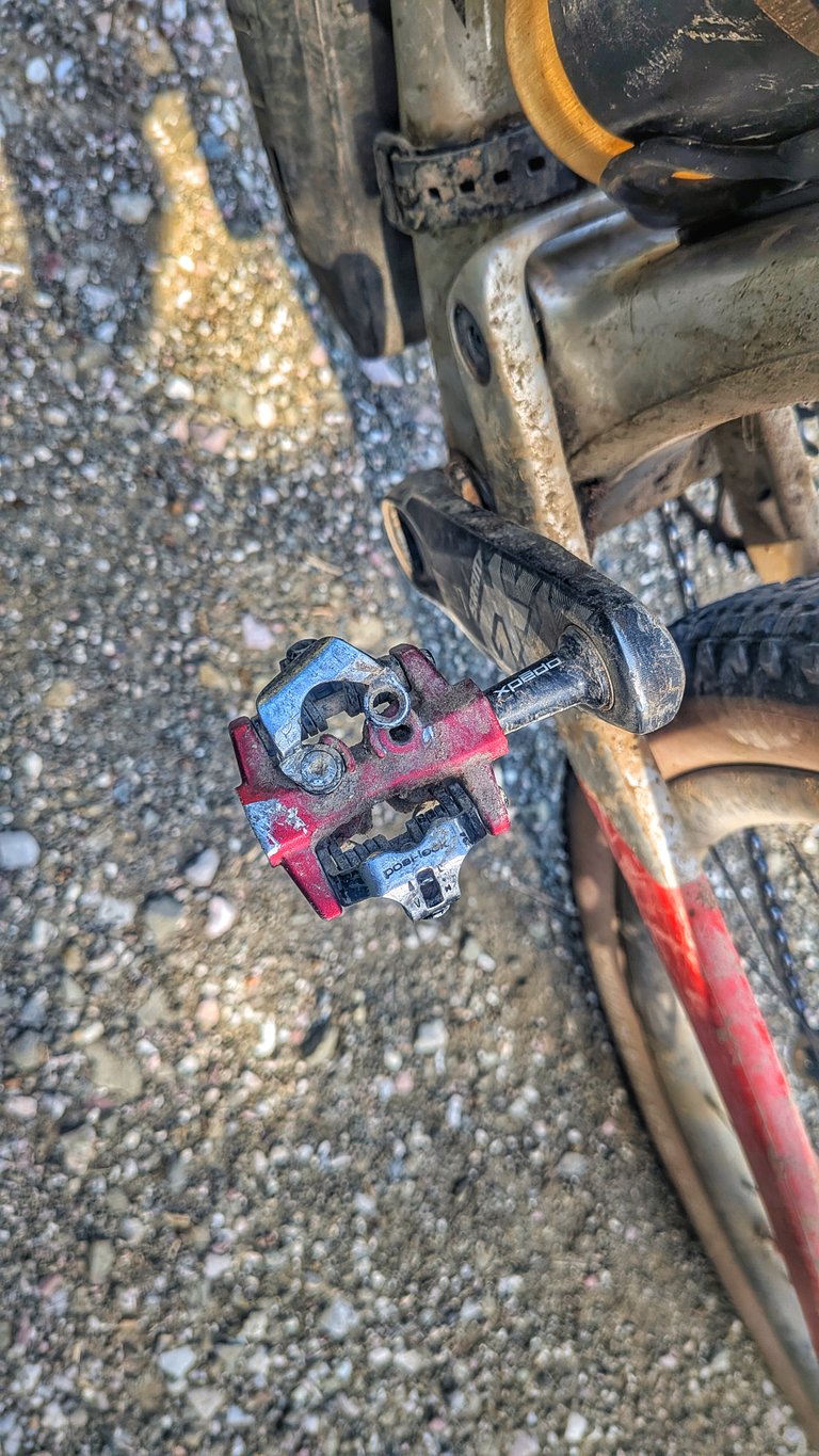 Opět přišlo vedro, což mi podlomilo podlomenou morálku. Ještě víc mě sebralo, že mi z pedálu vypadl šroubek! Už nějakou dobu jsem si všiml, že se mi jedna strana hůře nacvakává, teď to nešlo vůbec. Xpedo nebrat! Respektive jsem měl poloviční šanci, že se to podaří. Náhradní šroubky do kufrů jsem měl, ale tohle spadlo z pedálu a bylo to naprosto atypický. Nakonec jsem vyšrouboval celou jednu stranu, aby se mi lépe trefovalo do té správné. Ztrácel jsem tím drahocenný čas.
