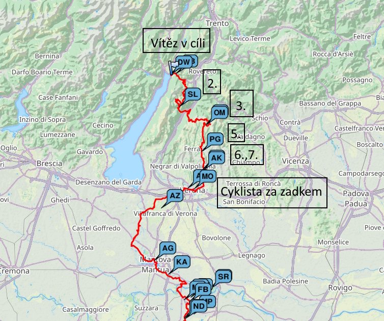 Předjel mě i Alexandr Kopp a vypadalo to, že své pozice budu ztrácet jako ponožky. Záchrana ovšem byla blízko a jmenovala se Valeggio sul Mincio.