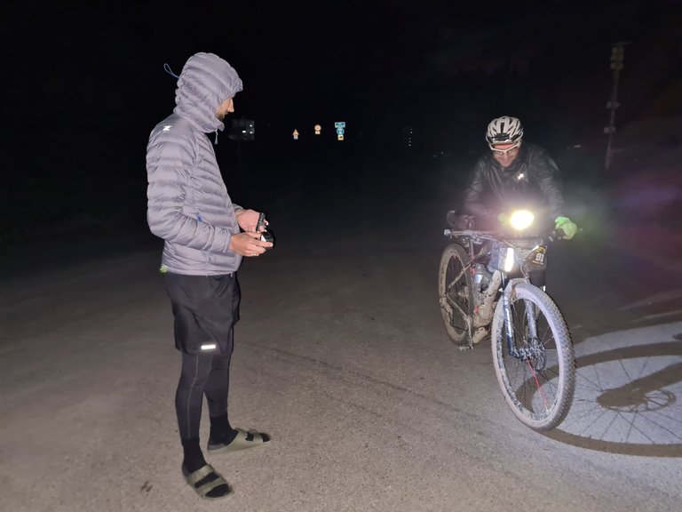 Za Velehradem mě dostihla dvojice spáčů – Lukáš Badura a Libor Darebník. Prohodili jsme pár slov a pokračovali ve své spanilé jízdě. Spali mnohem déle, sil měli na rozdávání – ale nerozdělili se. Poslední úsek jim stačil, aby mi nadělili 2 hodiny.