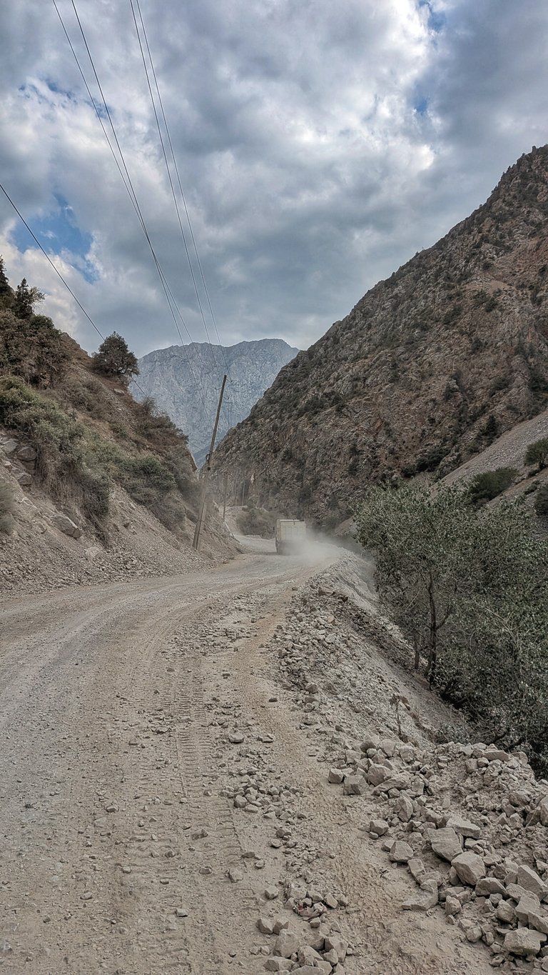 Stoupali jsme do sedla Koydzhuly - jestli se tak vůbec jmenuje. Na mapách.cz to jméno je, ale na Googlu to nenajde jediný výsledek. Cesta nahoru každopádně byla vcelku snadná, dolů byl zajímavý sjezd. Sjezd tak zajímavý, že jsem se v něm rozbil. Tony mi hned přispěchal na pomoc a otevřel tak velkou lékárničku, že by se ta moje dovnitř vešla asi 5x. Nešlo o nic vážného, jen pochroumané koleno. Možná jsem si i nakřápnul řidítka, ale to netuším.