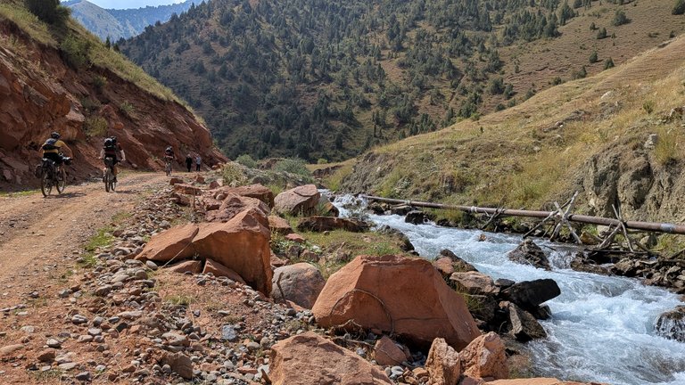 Další den jsme vyrazili v 10! Ještě si tam fotili kola na rigs of Silk Road Mountain Race na bikepacking.com. Já jsem tuhle aktivitu odmítl s tím, že nechci dodržovat milion pravidel, co má fotka mít, a nechci znovu popisovat svoji výbavu. A kdo chce, pro něj mám video 👇