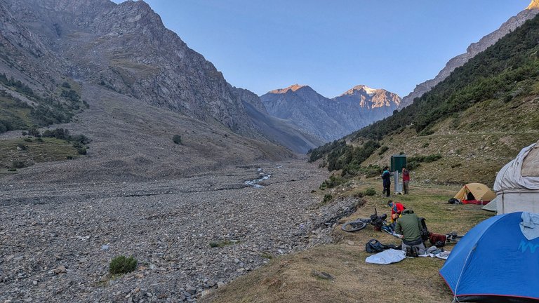 Ráno se celý jurt kemp probouzel. Konečně jsme vyrazili v rozumnějším čase, chvíli po osmé. Stihl jsem ještě snídani. Jednotlivé skupinky stoupaly na Jiptick pass. Kromě nás a turistek z Polska tu byla i skupina z Izraele nebo někdo se zajištěním odnosem zavazadel. Zvláštní, že půlka lidí tu byla buď nezaměstnaná nebo před bankrotem.