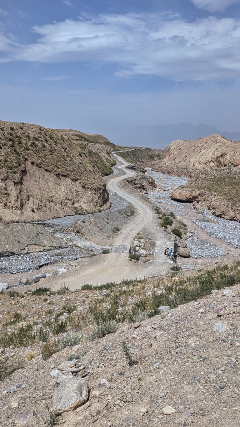 A pak jsem udělal velkou chybu - vyrazil jsem dál. Přede mnou byl 160 kilometrový úsek po Pamírské dálnici. Nepředstavujte si to jako naši dálnici, takhle byla jiná a kola tam smí 😉, i když je to trochu sebevražda. Chtěl jsem dojet do Saryl-Tash, za kterým začne silnice stoupat do hor. Chtěl jsem vždy spát co nejníže. V tomhle případě zhruba v 3100 metrech nad mořem.