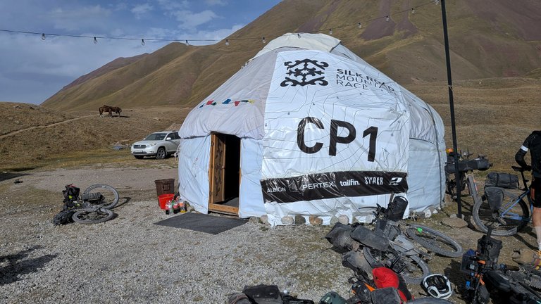 V Checkpointu stálo několik jurt a spousta stanů. Šlo o velmi komerční záležitost. Voda byla k dostání. V přepočtu za 80 korun. Žízeň jsem měl. Mohl jsem si teoreticky nabral v potoce, co byl kousek, ale když jsem viděl, kolik je v něm odpadků, nechtělo se mi to ani filtrovat. Ten litr jsem vypil prakticky okamžitě.
