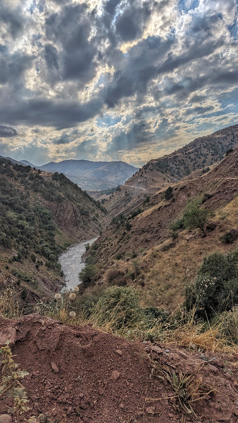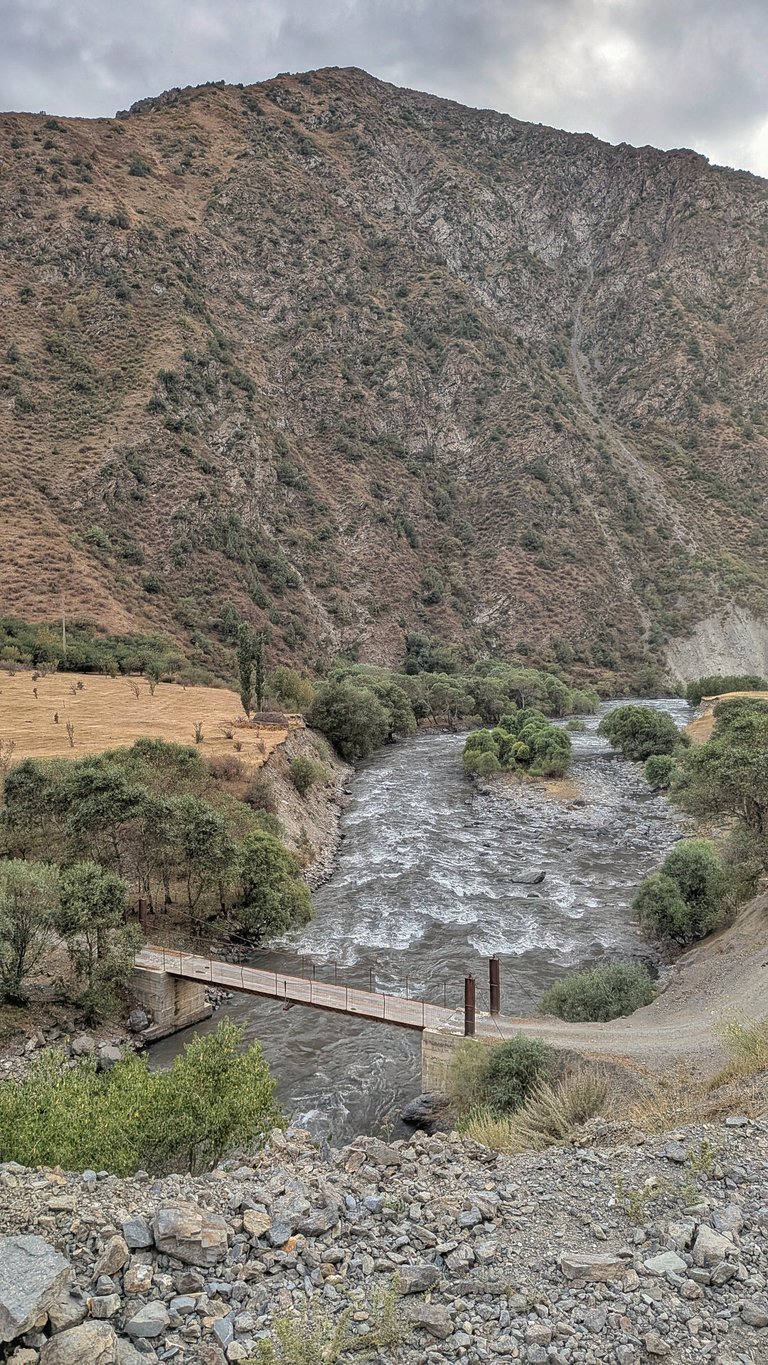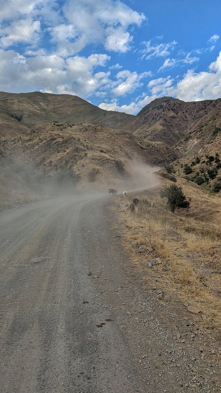Během noci se uklidnil nejen vítr, ale i provoz. Při stoupání do sedla „40 let Kyrgyzstánu“ mě jen občas minul zbloudilý kamion. Měl jsem štěstí na řidiče, protože pokud nejeli zrovna dva proti sobě, dávali mi dostatek prostoru. A pokud jeli … klidil jsem se do škarpy.