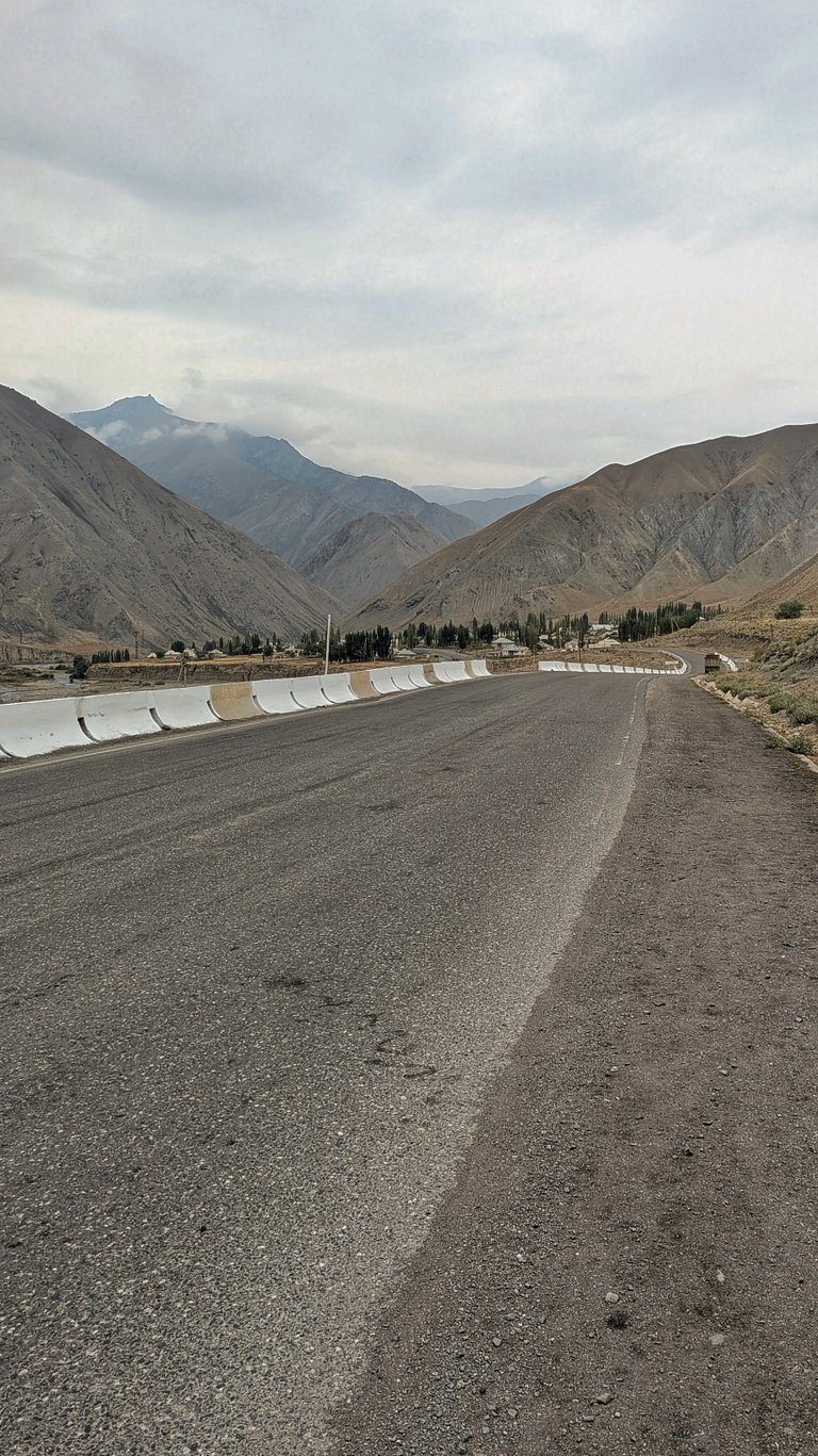 Nejdřív bych znovu zdůraznil, že Pamírská dálnice není žádná dálnice, rozhodně ne podle našich měřítek. Dva pruhy. Středová čára leda ve snu. Do nejvyššího sedla to byl alespoň asfalt. Když jsem projížděl údolí mezi horami, střídal se s obyčejnou, udusanou cestou.