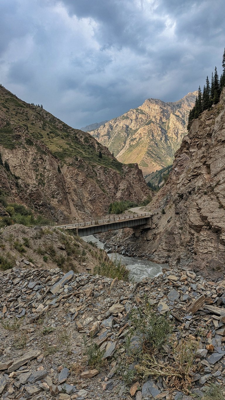 Těsně před startem se nám měnila trasa, protože právě za Narynem spadl most a museli jsme ho objíždět bočními stezkami. Ráno jsem mrznul, ale teď mě zase sužovalo vedro a oplachoval jsem se v potoce.