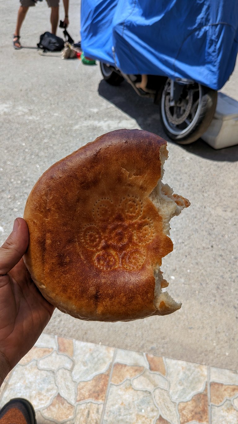 Náš taxikář zastavil u drive-through pekárny. Chleba, který dostal, ochytal a vrátil, asi mu přišel moc starý. Prodejce pak holou rukou ochytal všechny chleby, které měl v nabídce a vyměnil za ten s požadovanou kvalitou. Taxikář se pak s námi rozdělil. Jestli byl někdy vhodný čas sžít se s místními bateriemi, bylo to co nejdříve. S chutí jsem se do chleba zakousnul.