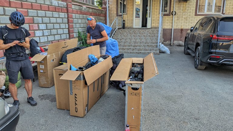Podařilo se nám dohodnout letenku na stejný termín, takže jsme do druhého největšího města Kyrgyzstánu, do Oše, doletěli spolu. Část výbavy jsem samozřejmě řešil na poslední chvíli a u několika kousků jsem se nemohl rozhodnout, jestli vzít nebo nevzít. Hodil jsem je do krabice s kolem, že se budu moct rozhodnout až později.