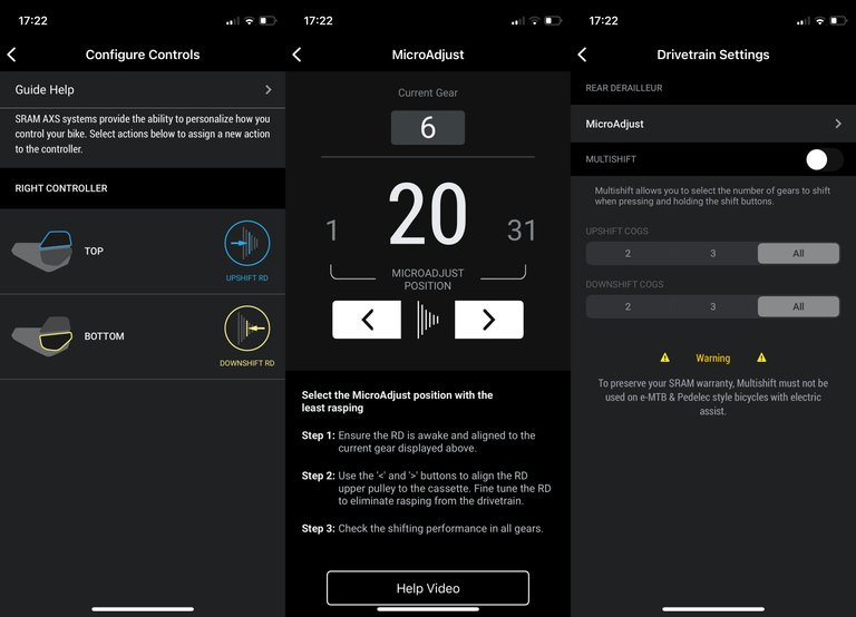 - Via “microadjust” you fine‑tune the shifting. You can do that directly via the shifter too, but in the app you clearly see the current setting. Functionally it’s an alternative to the inline barrel adjuster. I see lots of room for improvement here. If you could apply this per gear, you could very simply resolve issues from a bent hanger out in the field.