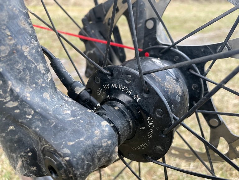 When powering a light, the nice thing is you don’t have to manage output. The faster you ride, the brighter it shines. Some lights have a capacitor, so you still have some light after stopping. It’s more suitable for gravel and road bikes, where you typically ride at higher speeds. On MTB you’ll hit the problem that in tough terrain you ride slowly but need a lot of light. You won’t avoid a battery headlamp anyway.