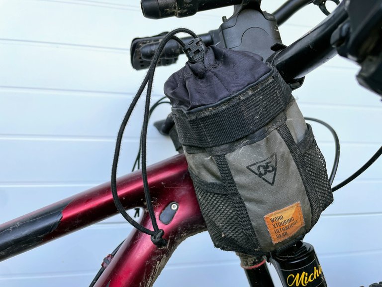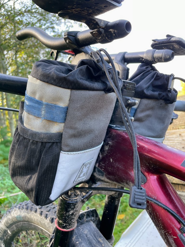 You’ll see these under names like “Stem bag”, “Feed bag”, or “Food pouch”. They don’t hold tons of stuff and they’re not rain‑proof. Their main advantage is that they’re light and easy to access. Grabbing something while riding is no problem. Most often they carry bars or sweets you nibble on. They’re also great for temporarily stashing items you don’t want to put away properly yet… or as a trash pocket for wrappers.