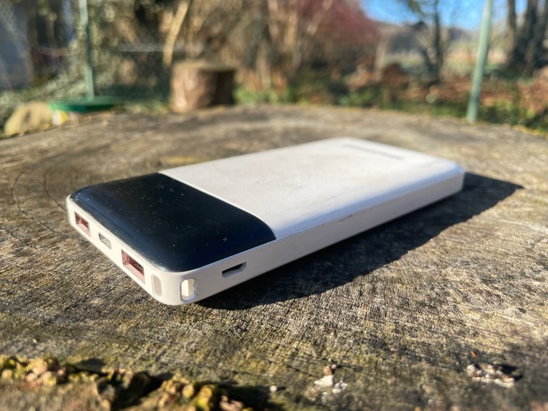 I’ve seen this on a lot of powerbanks, but I’ve never really understood what it’s really useful for. The basic principle is that you plug the powerbank into the charger and another device into the powerbank. The powerbank won’t charge itself, but primarily the device, and will eventually use the unused current for itself.
