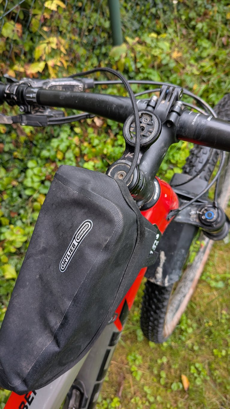 Not using classic hook-and-loop has its advantages ā you donāt have to worry about the frame getting scuffed by things inside the bag. With other bags I had the problem of a thin floor and the contents banging the frame. Here the bag does not directly touch the frame when using the rubber straps. Ortlieb still recommends adding a protective frame film.