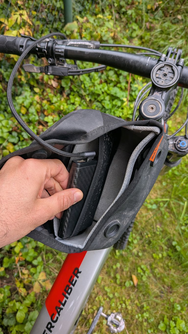 The internal mesh pocket is great. I kept my power bank in it. Thanks to better vibration damping Iām less worried about ports loosening. Use it with a 90° cable and everything fits nicely. Thereās even enough space so that a Google Pixel 9a phone fits inside.