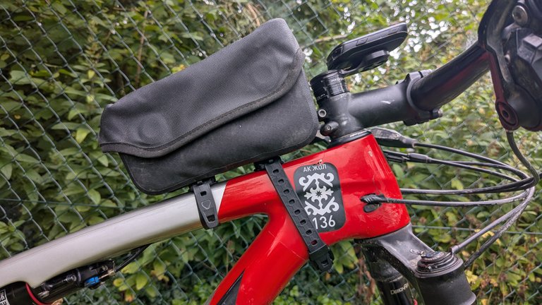 The bag arrives prepared for bolt-on mounting. If, like me, you donāt have the mounts, rubber straps are included. On my MTB frame I had the issue that I could not place the bag as far forward as I wanted because the rubber strap is not long enough. Still, my knees do not touch the bagāthough itās close.