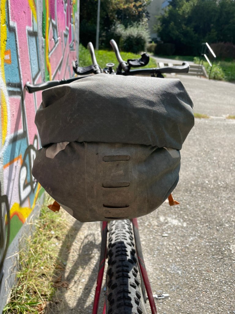 A few times, when not properly secured, the bag touched the tire, but there’s no visible damage. The only real issue arose when I lent it to my friend on long race. I’m not sure what he did, but he returned it with a hole 😉 near the top by the seat post. I had it repaired under warranty, and Ortlieb fixed it.