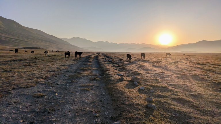 It was slowly getting dark. I was riding on a rolling road and felt worn out to my bones. Plus I was constantly riding into the wind. It was primarily a battle of minds. I met a Kyrgyz racer who told me the wind would turn around in the morning. That was bad news. Because in the morning I’d be coming back the opposite direction.