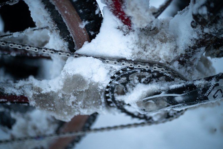 Sticky snow and ice were one of the worst problems. There were many puddles and as I went through, the water froze on my gears and shifting was so off. My pully wheels got an ice crust, and my chain was skipping 100 % in some sections.