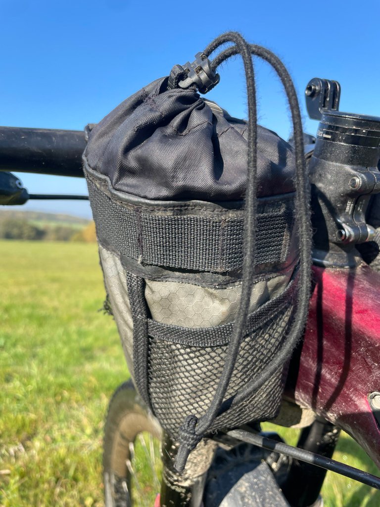 The Woho stem bag is lightweight, durable, and a great addition for bikepacking and shorter trips. You can use it for bars, small items, or a water bottle. It can withstand years of rough handling. Just be cautious with the side pockets. Use them only if the bag is full, and mostly for items you won’t mind losing.
