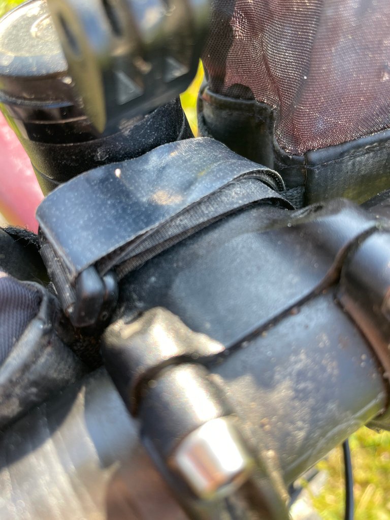 Thanks to the three-point attachment, the bag is stable and doesn’t bounce around while riding. I don’t use the original straps and tighten it as much as I can. I recommend attaching it to the fork as well.